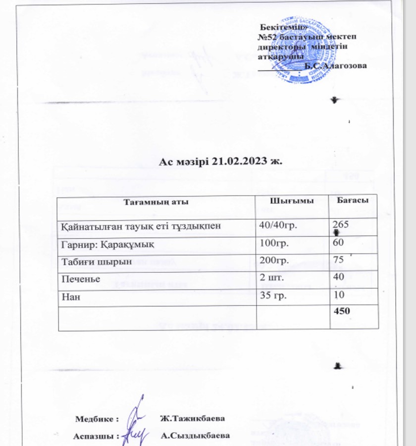 Асхана мәзірі » НШ №52
