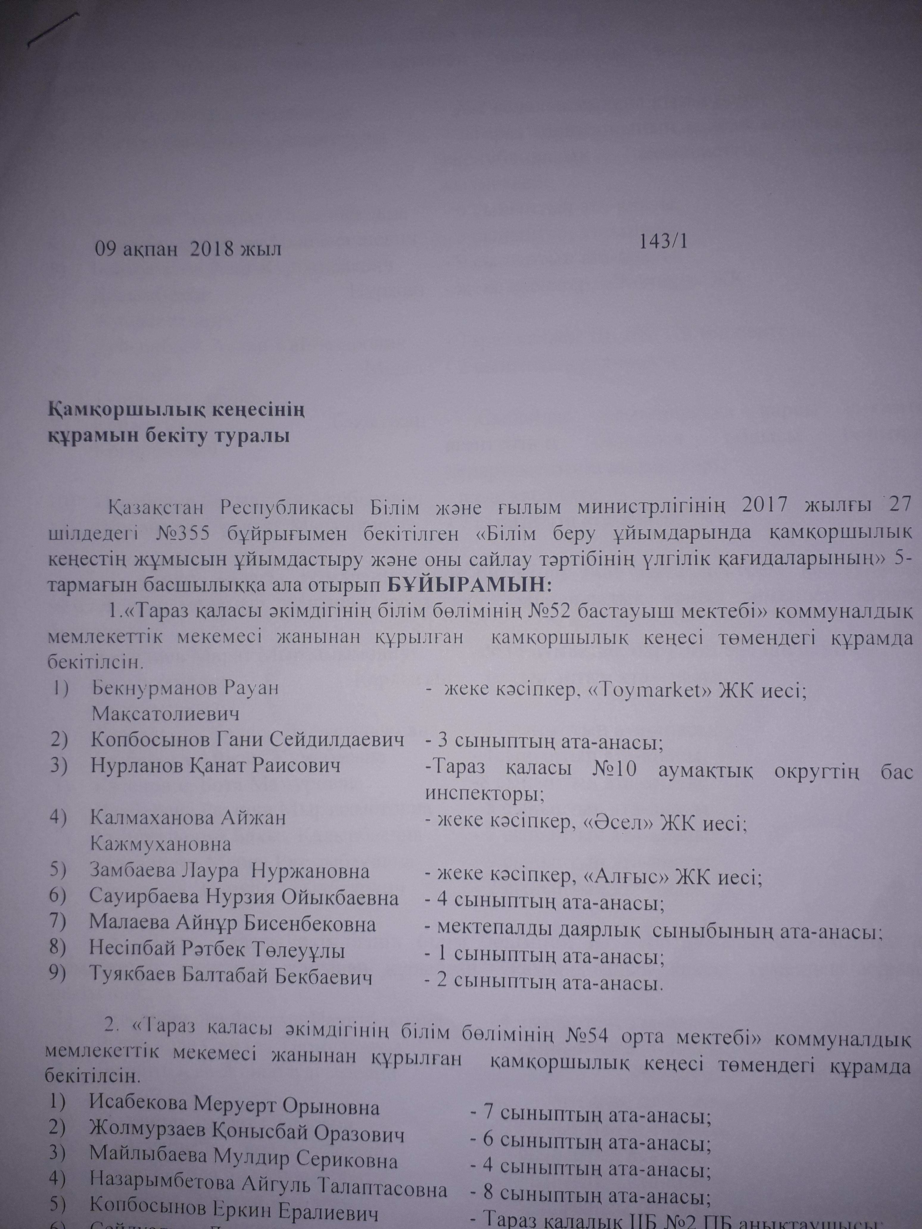 Қамқоршылық кеңес туралы хабарлама » НШ №52